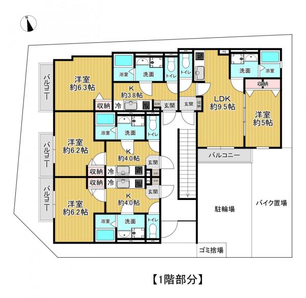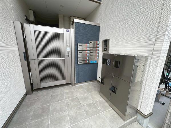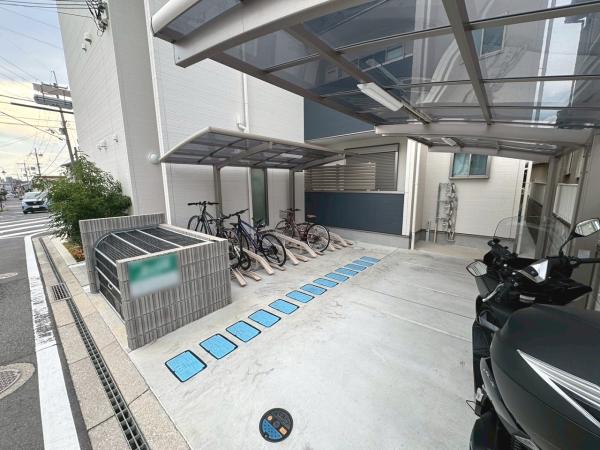 オートロック・専用ごみ置き場・モニター付きインターホン・シューズボックス・温水洗浄暖房便座・システムキッチン(ガスコンロ 2口)・共用部コンセント(各階設置)・駐輪場・バイク置き場・宅配ボックス・警備会社(関電SOS)